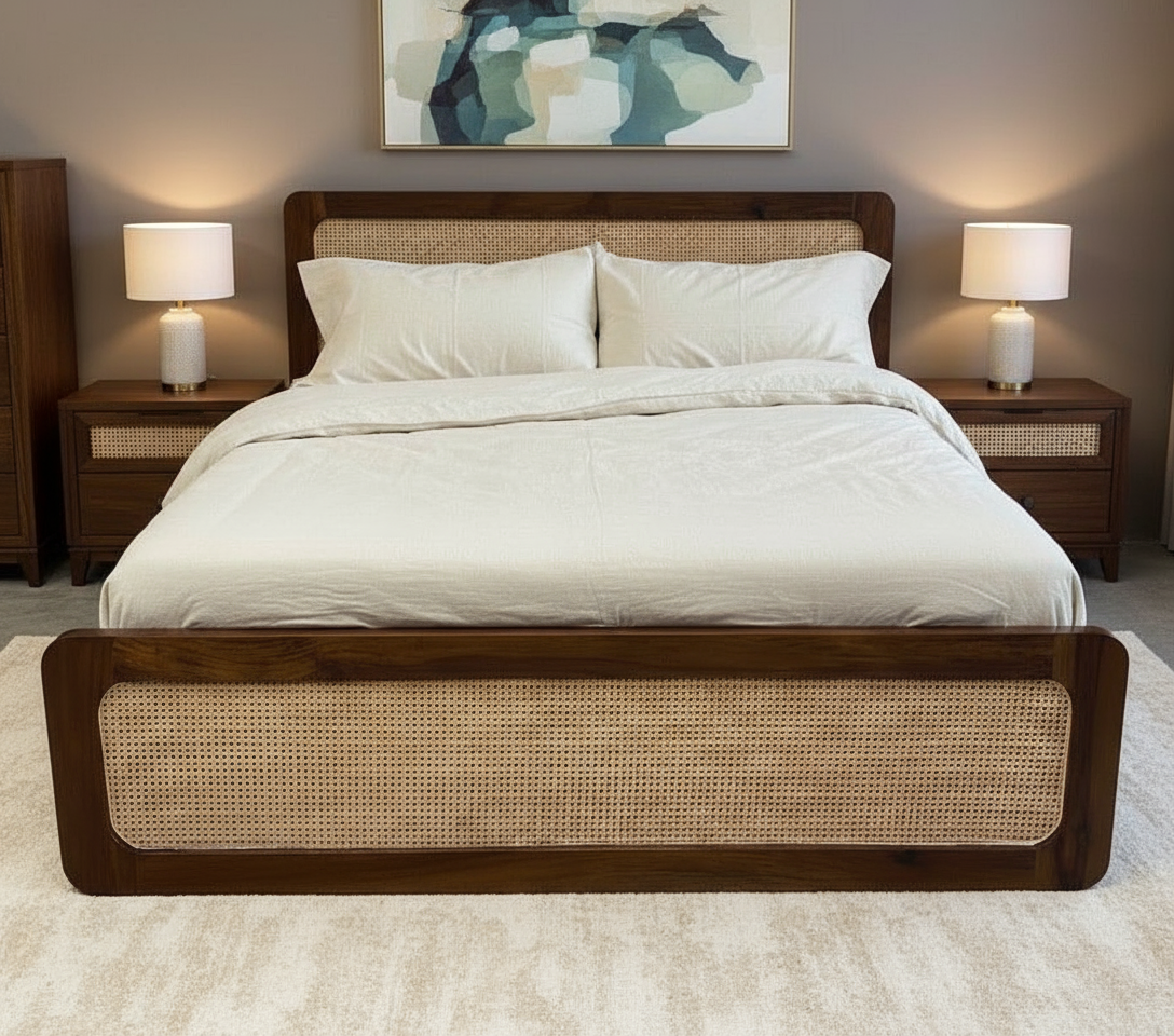 Rustic and timeless, this Sheesham wood and rattan cane storage bed offers a unique look for any bedroom. Durably constructed, the modern design of this king or queen size bed is sure to provide years of comfortable and stylish sleeping. Choose your size and enjoy a touch of natural luxury in your own home.