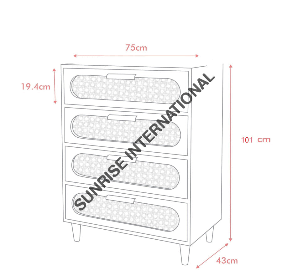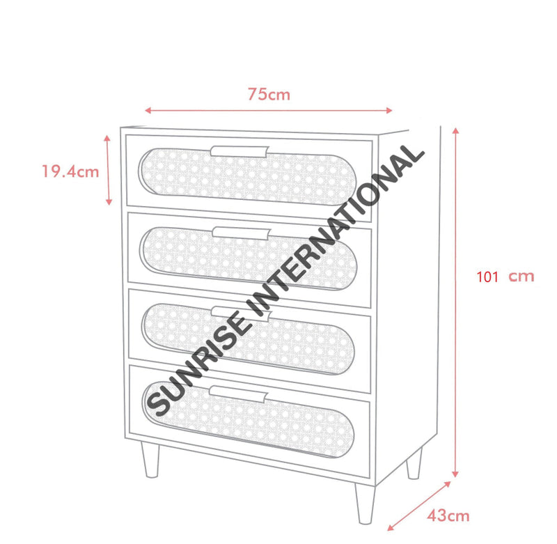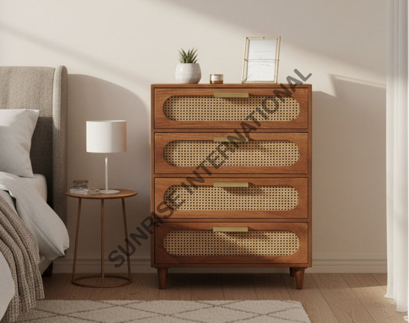 Bring timeless, mid century style to your home with this handmade wooden chest of drawers cabinet. Crafted with hand with beautiful rattan cane work, it adds charm and sophistication to any room. Perfect for storage or everyday living.