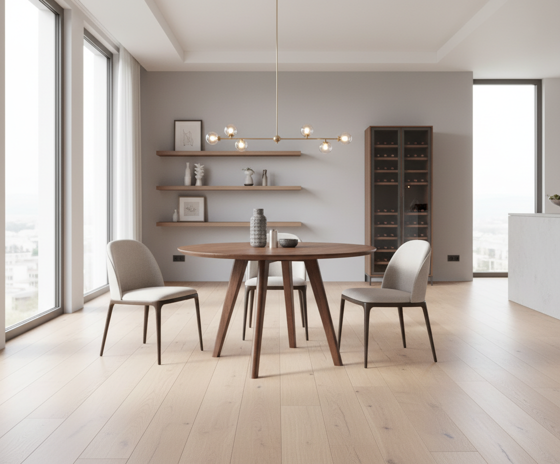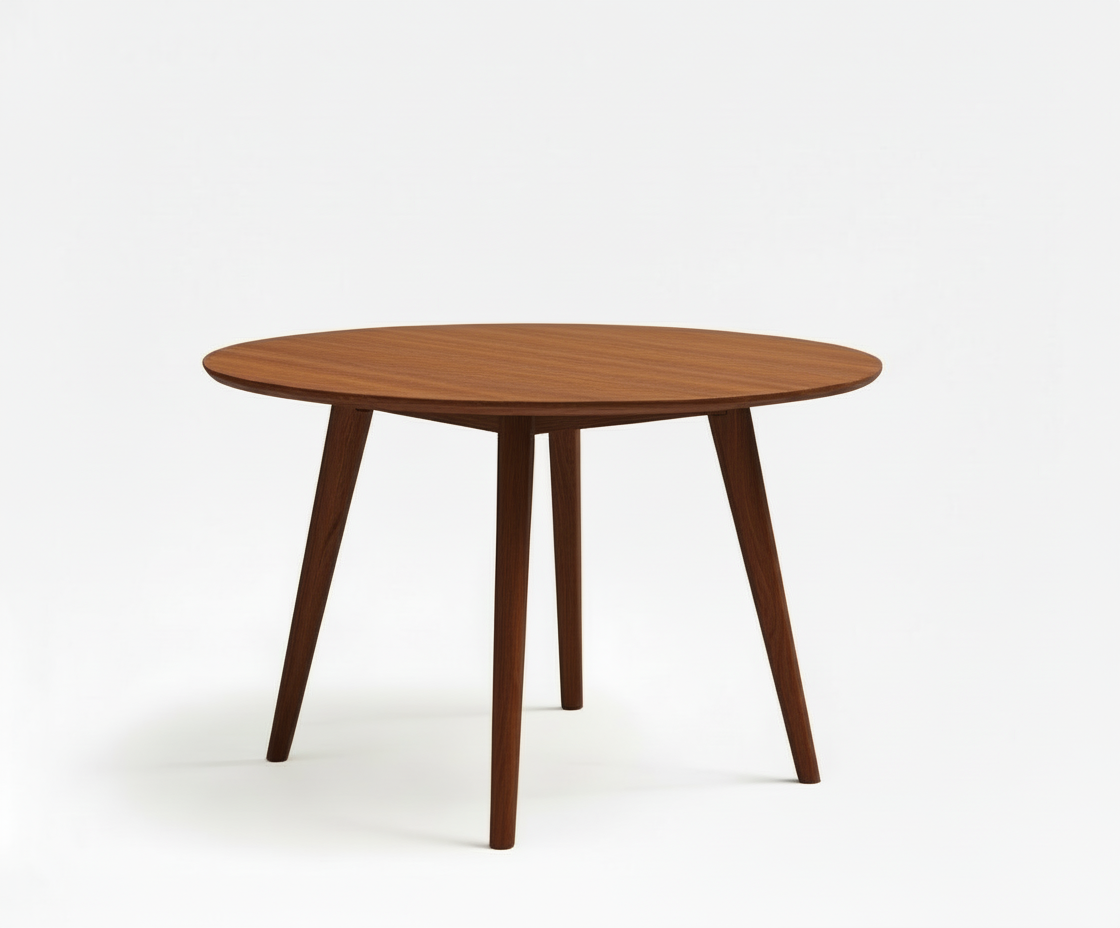 Expertly crafted from solid sheesham Wood, this 4 seater round dining table exudes Mid century sophistication. It offers ample space for dining and entertaining. Elevate your dining space with this timeless and sturdy piece.
