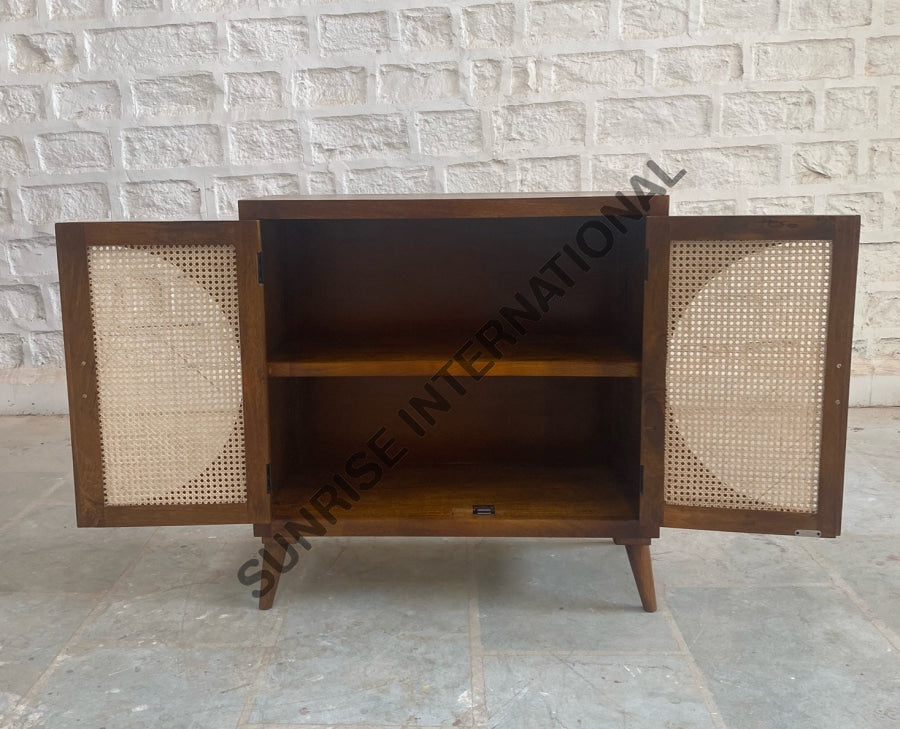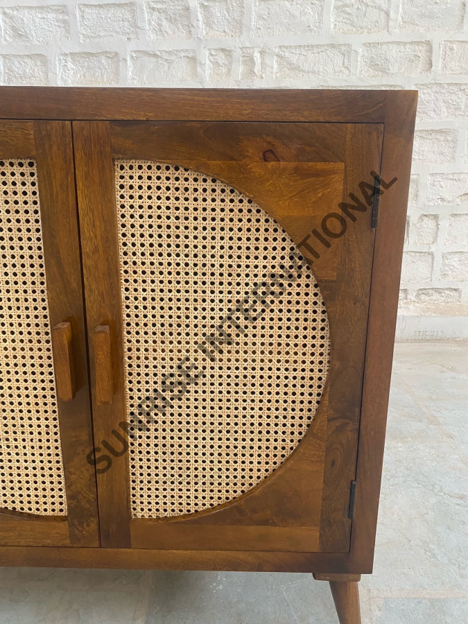 Bring timeless, mid century style to your home with this handmade wooden sideboard cabinet. Crafted with hand with beautiful rattan cane work, it adds charm and sophistication to any room. Perfect for storage or everyday living.