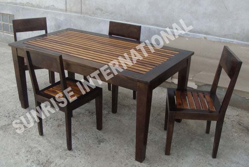 Size:1 Table = 120 L x 80 B x 76 H cms, 4 Chair = 45x45x90 H cms