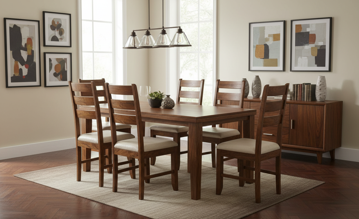 Size: 1 Table = 147 L x 90 B x 76 H cms, 6 Chair = 45x48x102H cms (Seat cushion included)