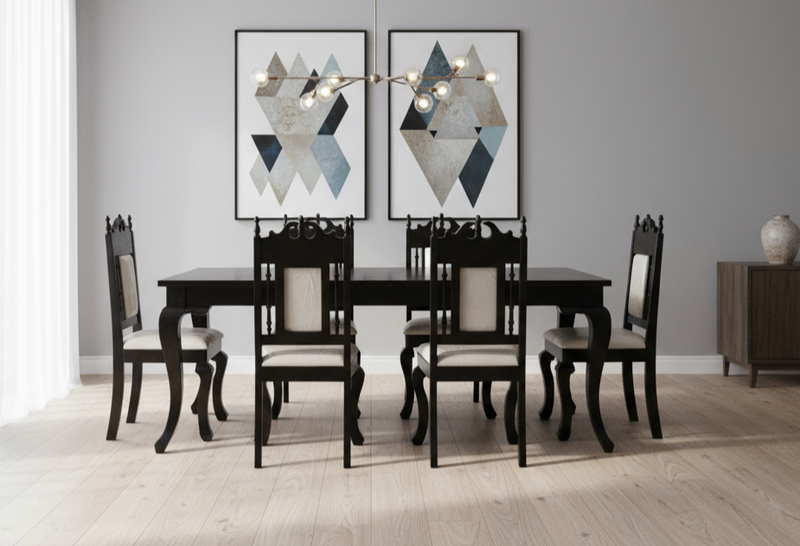 Size (L x B x H): 1 Table = 147x90x76H cms, 6 chairs = 45x48x102H cm
