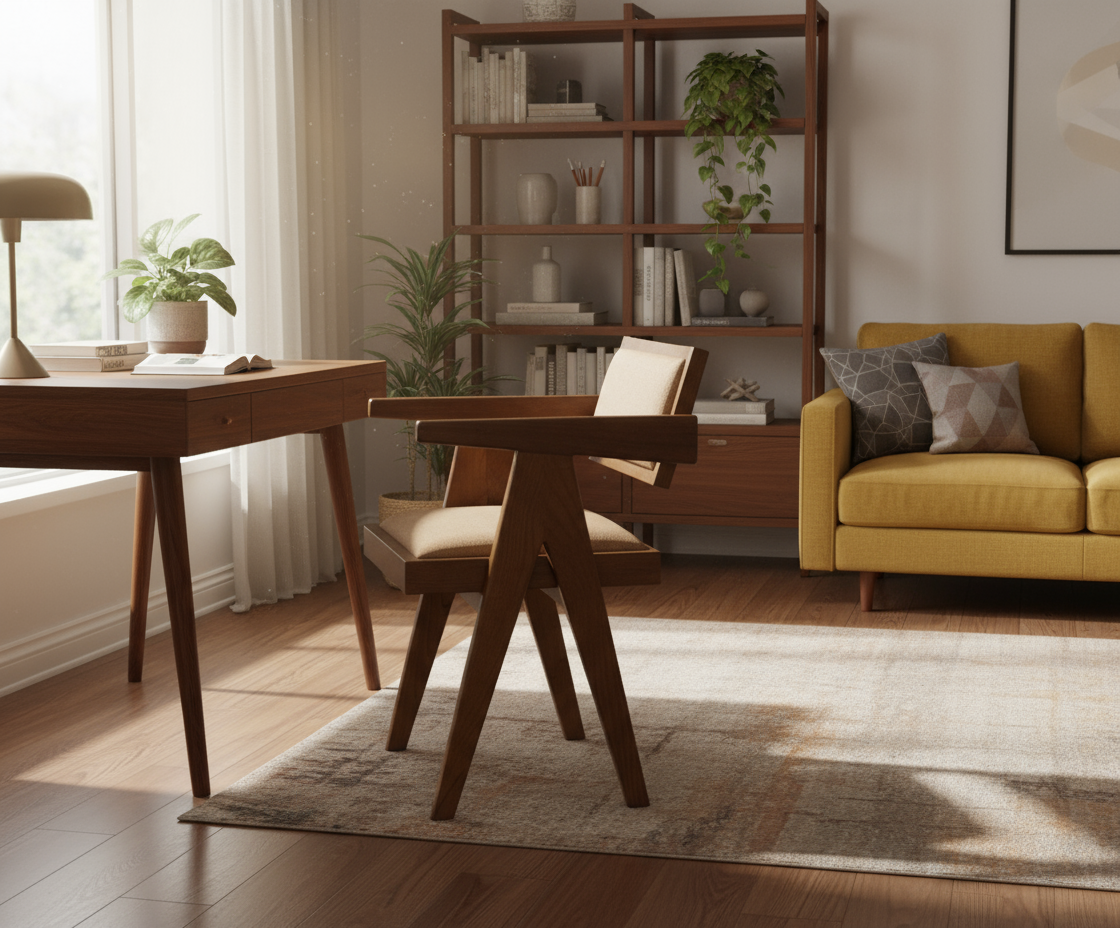 Experience timeless elegance with the Mid Century Wooden Relaxing Arm Chandigarh Chair, designed for comfort and style. Crafted with a sturdy wooden frame, this chair features plush seat and back cushions that provide exceptional relaxation. Perfectly suited for homes, restaurants, or cafes, its classic design blends seamlessly with a variety of interiors, adding a sophisticated touch to any setting. Elevate your space with this blend of comfort and mid-century charm.