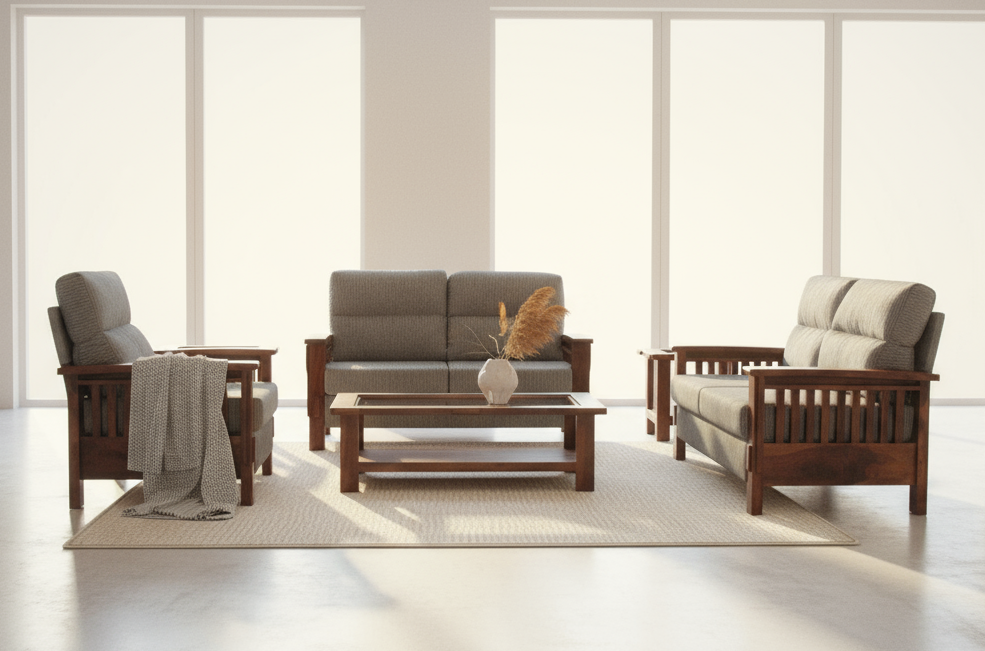 Modern Contemporary Wooden 2+2+1 Seater Sofa set with 1 center table !