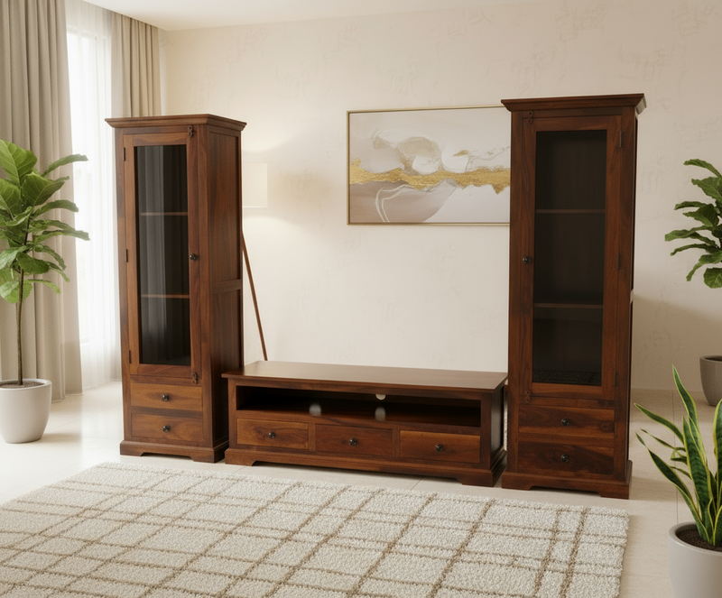 Huge and amazing collection of solid sheesham woodTV unit online to decor your home. Let your significance enhancement get a place of pride to spice up your family time and bringing you shades of tv unit that is a need for your TV table. The sheesham wood tv unit online for your living space available at the lowest prices in India. Shop Tv unit & table furniture on affordable EMIs.