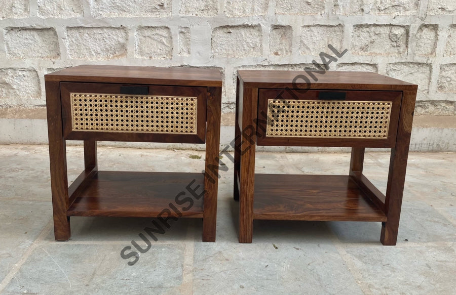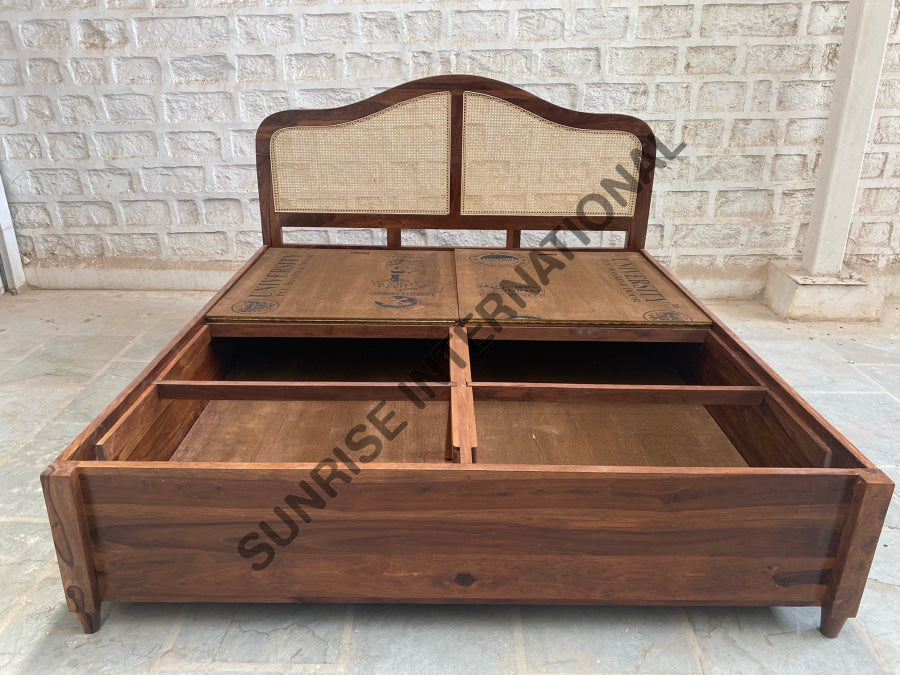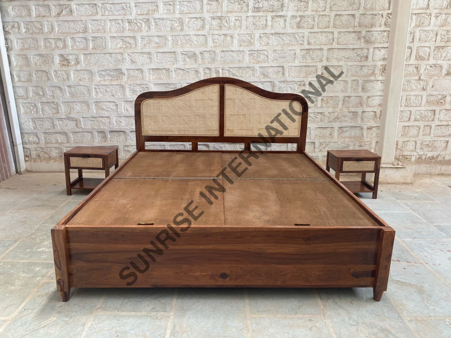 Artistic Rattan cane Sheesham wood King & Queen Bed with box storage