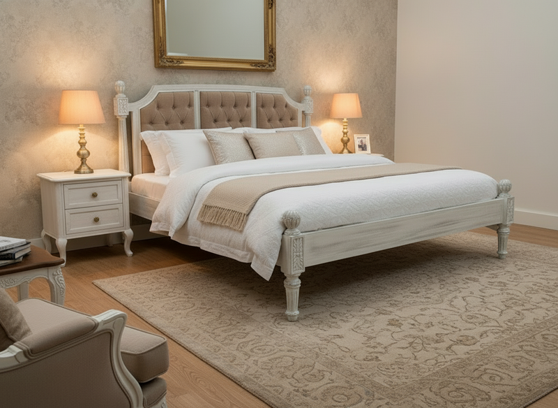 Rustic and timeless, this Solid mango wood bed with upholstered tufted cushion headboard offers a unique look for any bedroom. Durably constructed, the mid century design of this king, queen, or single size bed is sure to provide years of comfortable and stylish sleeping. Choose your size and enjoy a touch of natural luxury in your own home.