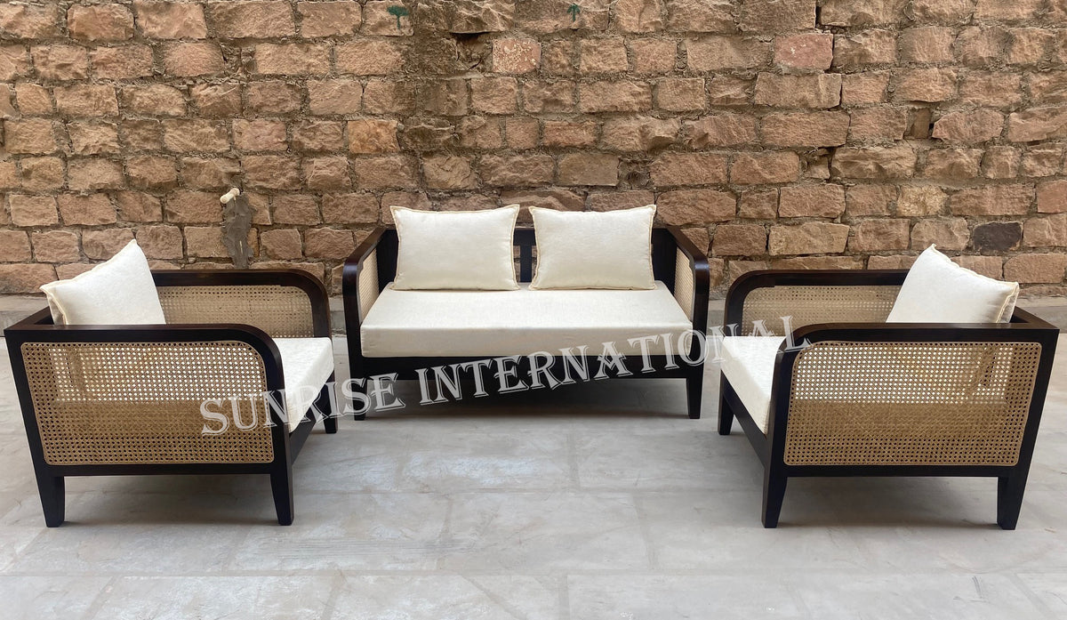 Designer wooden rattan cane sofa set with cushion - Make your combination !