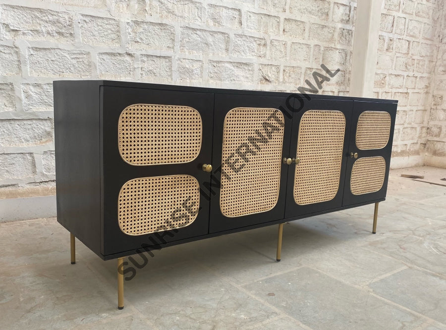 Bring timeless, mid century style to your home with this handmade wooden sideboard cabinet. Crafted with hand with beautiful rattan cane work, it adds charm and sophistication to any room. Perfect for storage or everyday living.