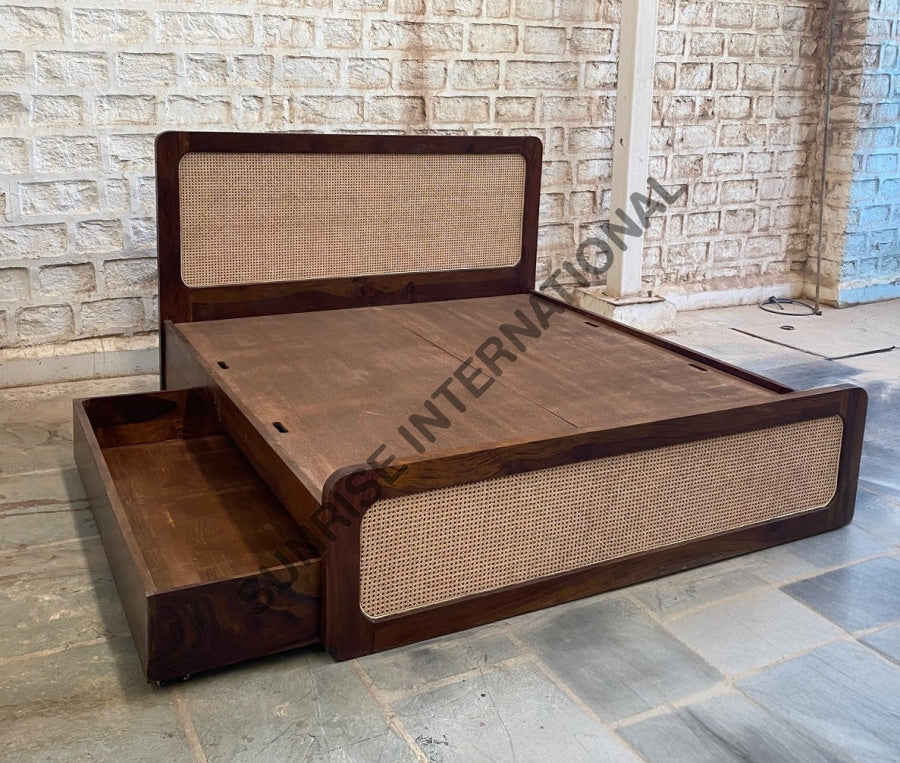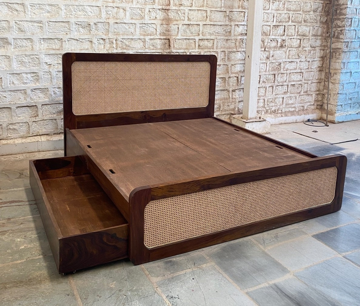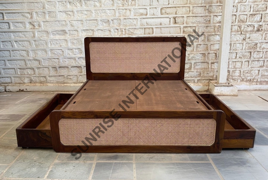 Rustic and timeless, this Sheesham wood and rattan cane storage bed offers a unique look for any bedroom. Durably constructed, the modern design of this king or queen size bed is sure to provide years of comfortable and stylish sleeping. Choose your size and enjoy a touch of natural luxury in your own home.