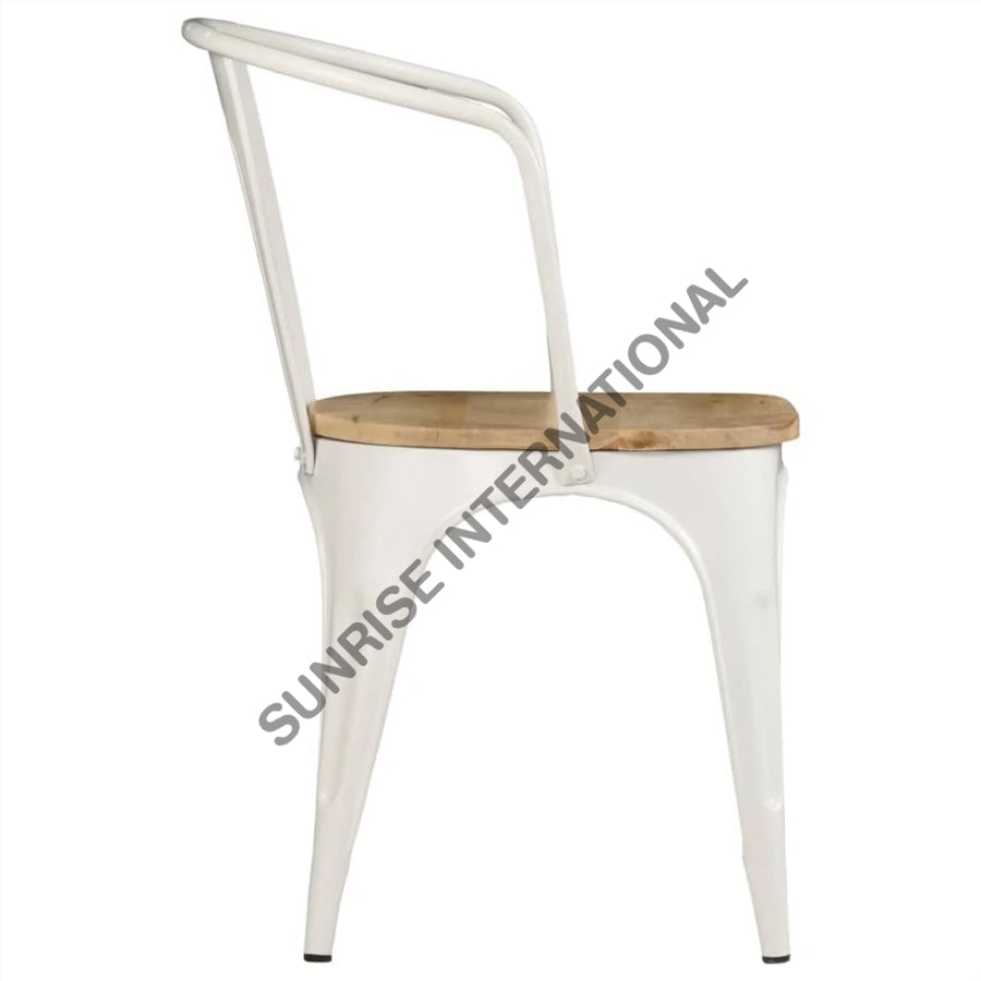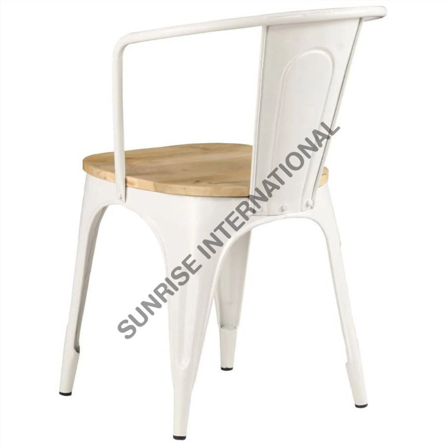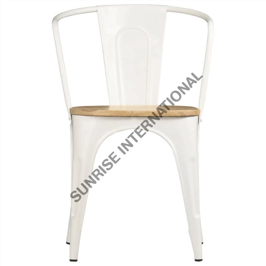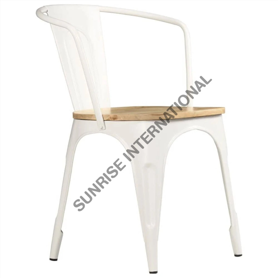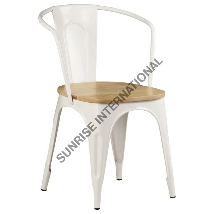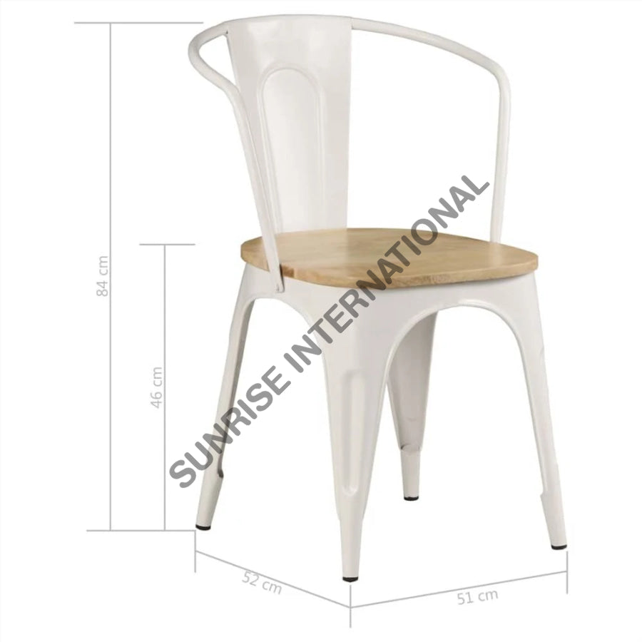 Upgrade your home or hotel with our stylish Metal & Wood Tolix type Arm Chair, perfect for outdoor use at restaurants and cafes. Expertly crafted, this chair offers durability and comfort, making it the ideal addition to any setting. Enjoy a touch of modern elegance with this versatile and practical piece.